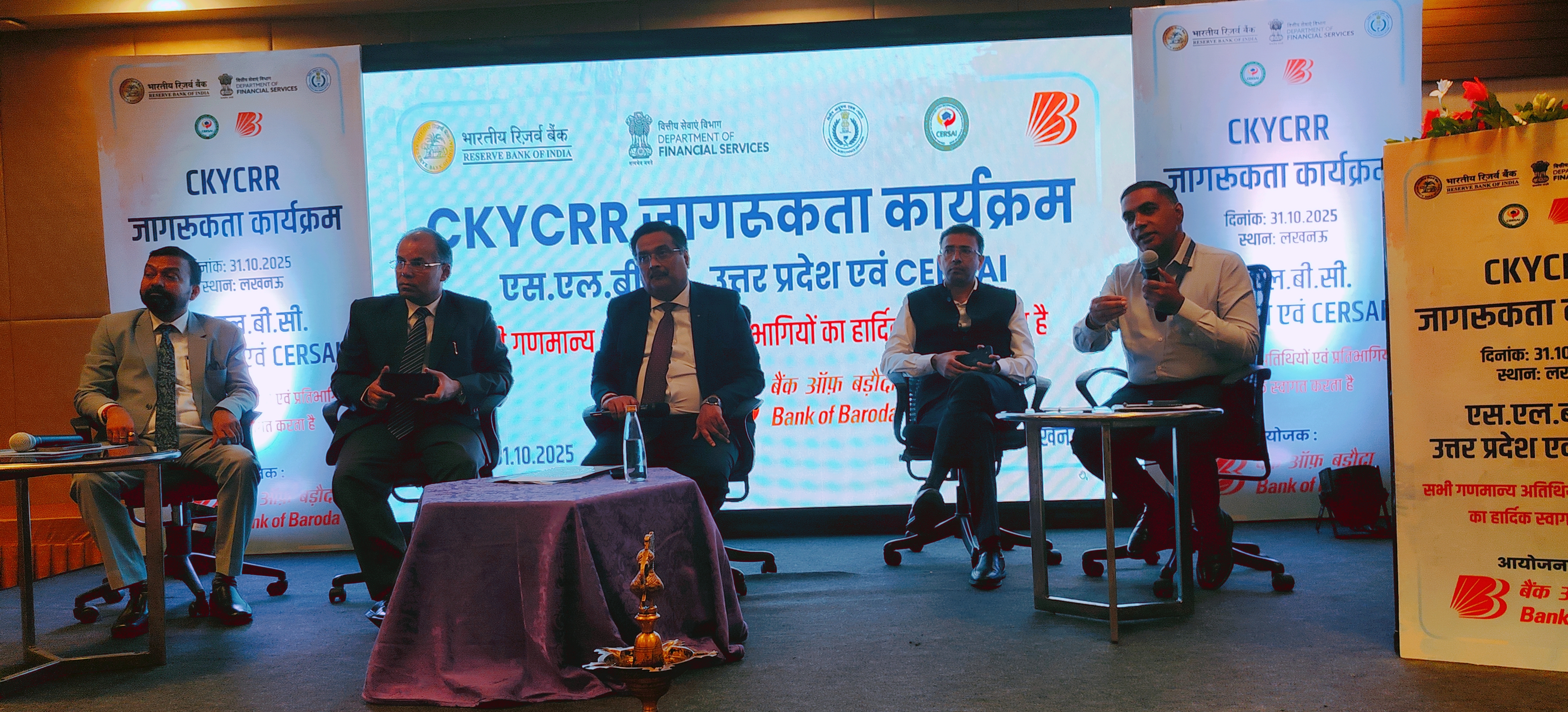 शुधांशु कुमार सिंह, जीएम, बैंक ऑफ बड़ौदा, शैलेन्द्र कुमार सिंह, जीएम, बैंक ऑफ बड़ौदा और संयोजक एसएलबीसी-यूपी भारी संख्या में बैंकों कर्मीय मौजूद रहें।