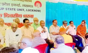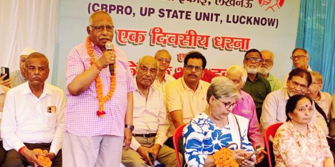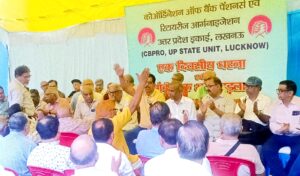 लखनऊ। कोऑर्डिनेशन ऑफ बैंक पेंशनर्स एवं रिटायरीज ऑर्गेनाइजेशन की यूपी इकाई द्वारा आज भारतीय स्टेट बैंक मुख्य शाखा के बाहर भूख हड़ताल एवं धरना आयोजित किया गया जिसमें विभिन्न बैंकों एवं जनपदों के लगभग 600 सदस्यों ने भाग लिया।