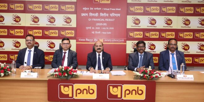 लखनऊ, 30 जुलाई, वित्तीय वर्ष 2025-26 की पहली तिमाही में पंजाब नैशनल बैंक (पीएनबी) की कुल आय साल-दर-साल 15.7% बढ़कर ₹ 37,232 करोड़ हो गई, जबकि शुद्ध ब्याज आय में 1% की वृद्धि हुई।